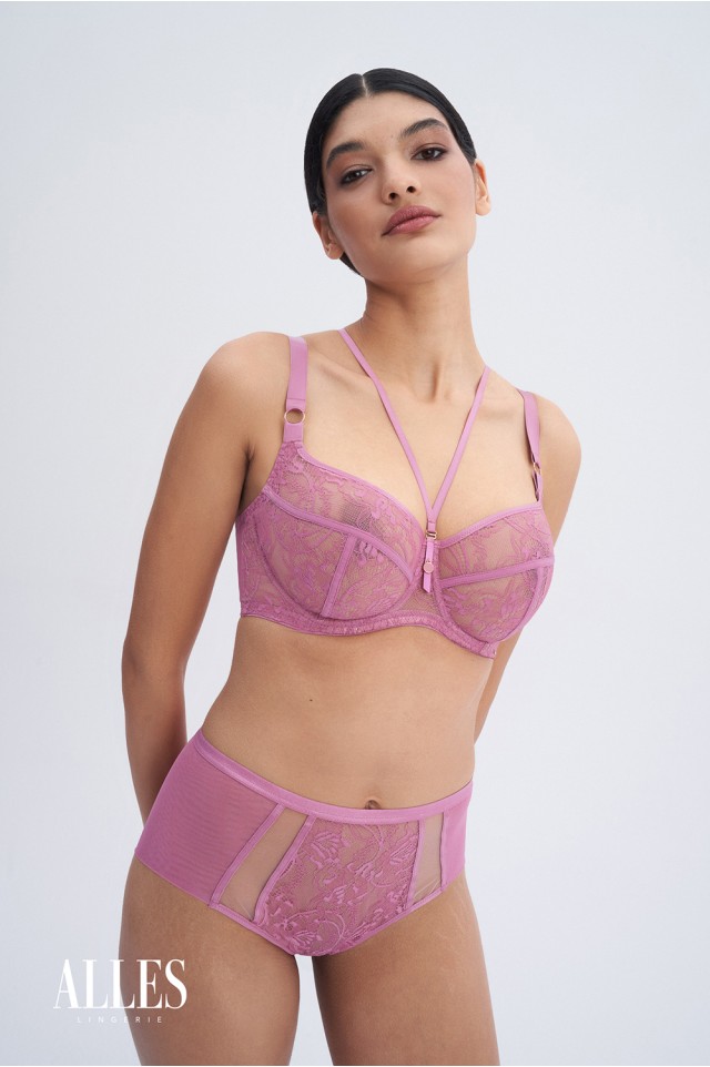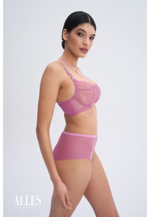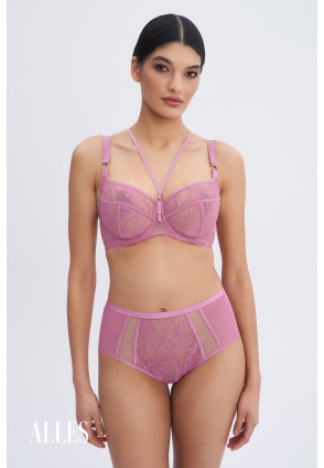 Высокие розовые трусики-слип Chiara выполнены из эластичной сеточки с красивого кружева. Ластовица хлопковая.