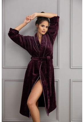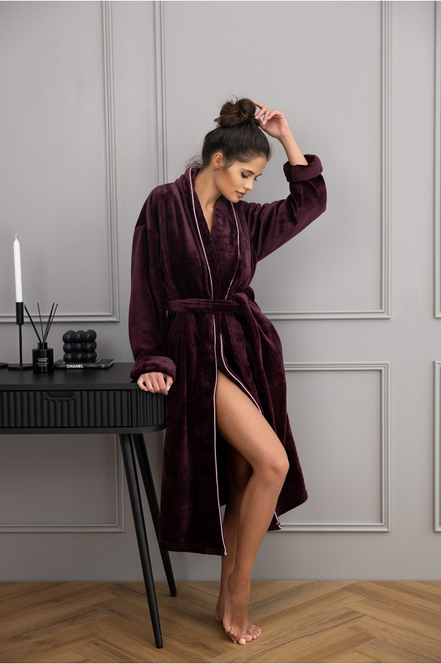 Роскошный банный халат Cameron длины миди с капюшоном и длинными рукавами. Талию подчеркивает пояс. Халат отлично впитывает воду.