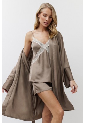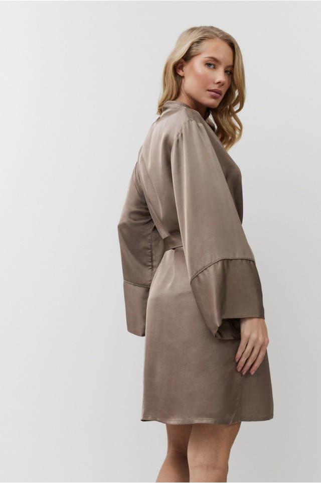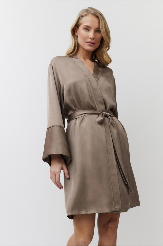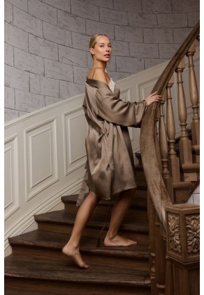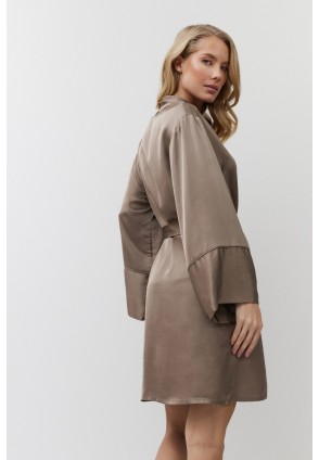 Побалуйте себя роскошной гладкостью сатинового халата MILA. Халат с поясом, рукава длинные, свободные. Окантовка придаёт изделию изысканность. Выполнен из шелковистой сатиновой вискозы с легким блеском.