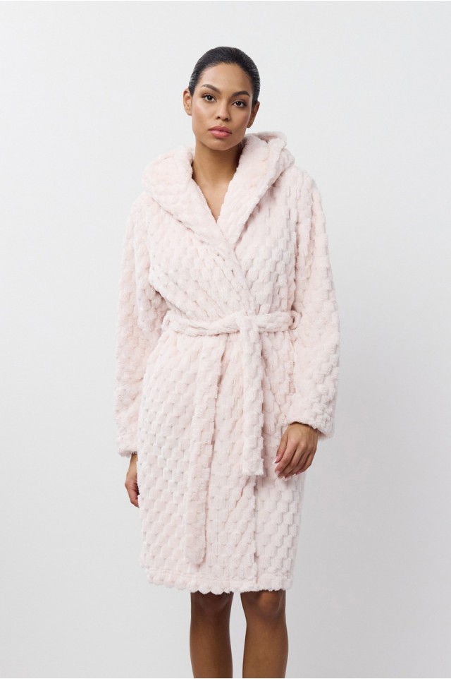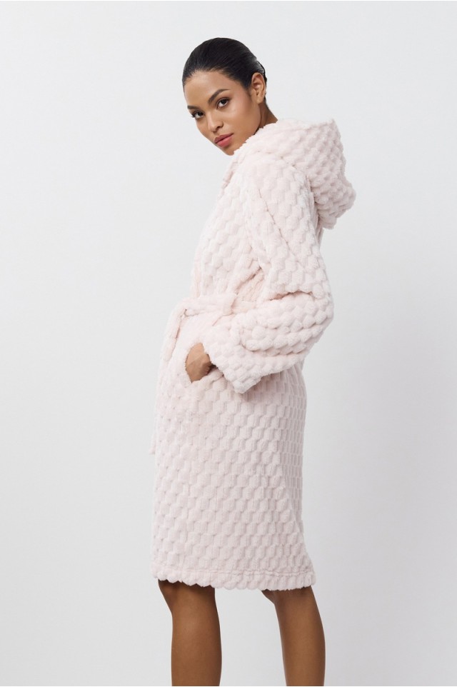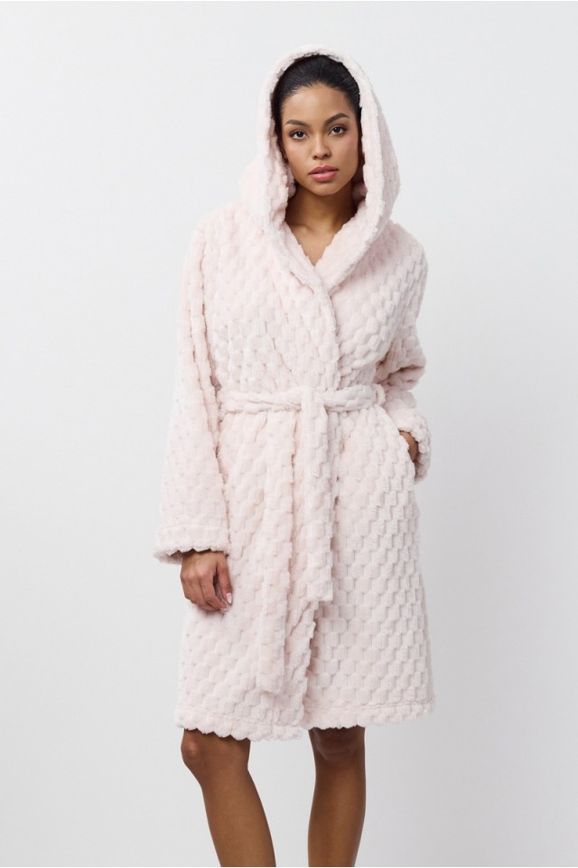 Расслабьтесь с комфортом в мягком халате PIA. Короткий теплый халат с поясом и копюшоном. Изготовлен из мягкой приятной к телу текстурной ткани. По бокам карманы. Окутает и согреет вас в холодное время года. В нем вам будет тепло и уютно!