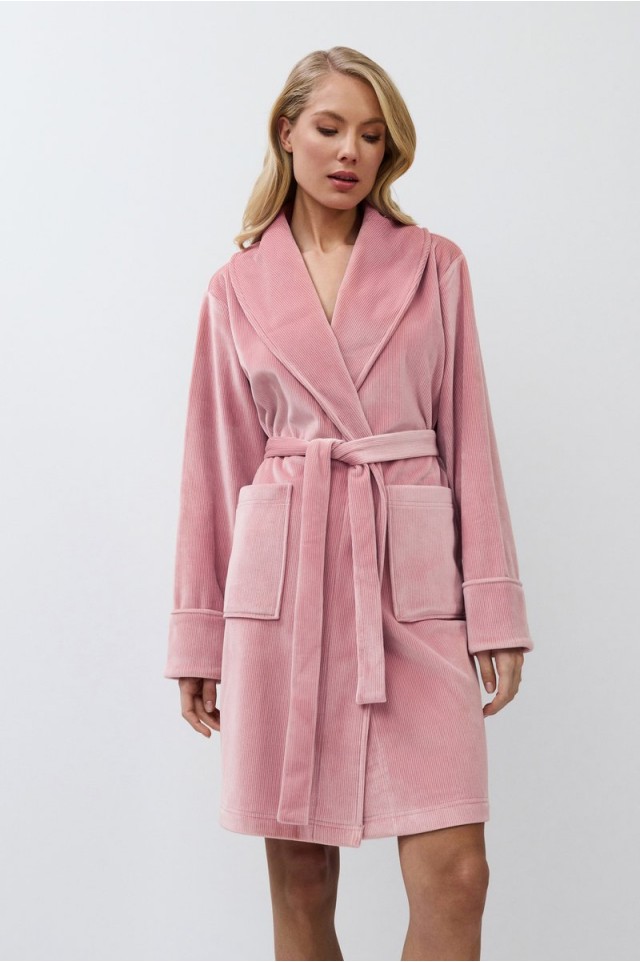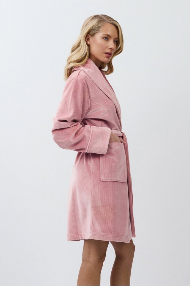 Расслабьтесь с комфортом в мягком халате VEA. Халат с поясом. Длина до колен. Изготовлен из мягкой приятной телу текстурированной ткани в полоску. Имеются два накладный кармана. Окутает и согреет вас в холодное время года. В нем вам будет тепло и уютно!