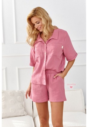 Женская пижама с шортами IRIS от европейского производителя Taro. В комплекте рубашка с нагрудными карманами и шортики на резинке. Изделие выполнено из воздушной дышащей ткани муслин.