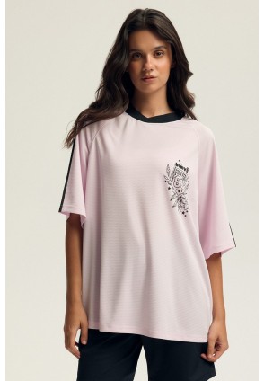 Удлиненная женская футболка от европейского производителя Bloovii by Esotiq. Футболка свободного кроя, с удлиненным рукавом и круглым вырезом горловины. На груди надпись. Легкая и приятная к телу.