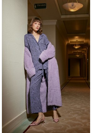 Пижама женская со штанами ALIX для вашего ночного комфорта. Пижама выполнена из вискозы. Рубашка на пуговицах, с длинными рукавами, отложным воротником и нагрудным карманом. Окантовка дополняет и украшает комплект. Штаны свободные, с эластичным поясом с завязкой. Расслабьтесь с максимальным комфортом и стилем в пижаме ALIX.