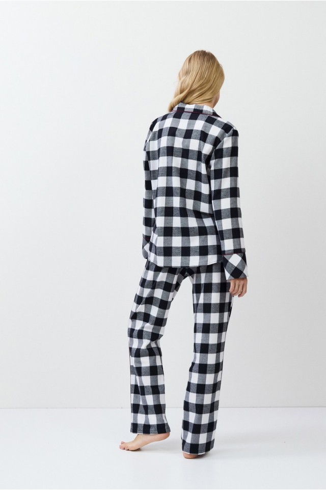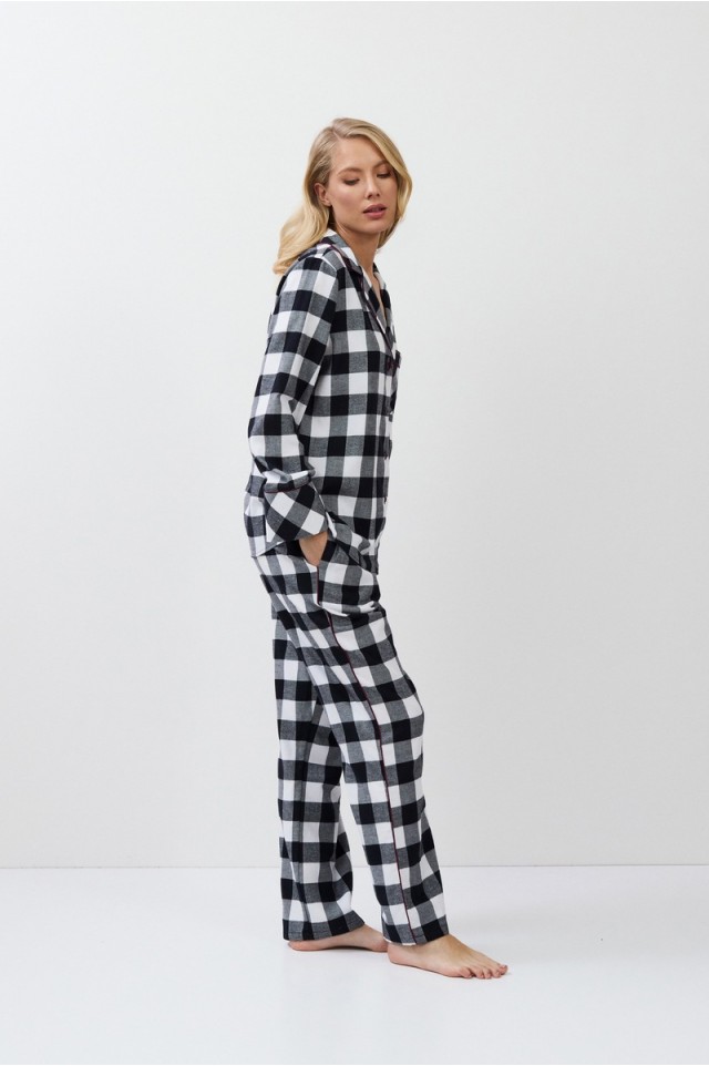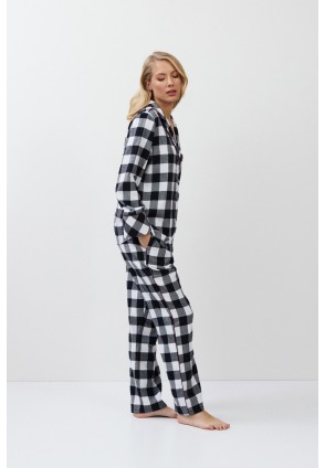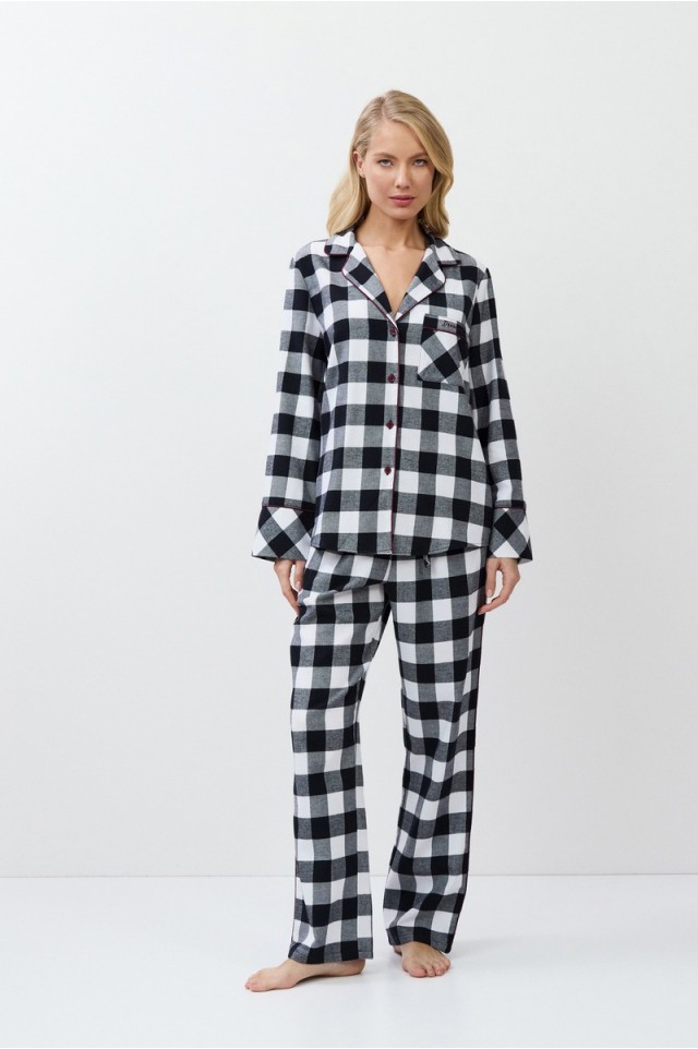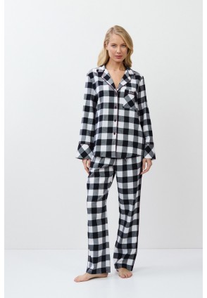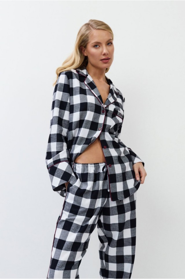 Пижама женская со штанами ANGELICA для вашего ночного комфорта. Пижама выполнена из хлопковой фланели. Рубашка на пуговицах, с длинными рукавами, отложным воротником и нагрудным карманом. Окантовка дополняет и украшает комплект. Штаны длинные, свободной формы, с эластичным поясом с завязкой и боковыми карманами. Расслабьтесь с максимальным комфортом и стилем в пижаме ANGELICA.