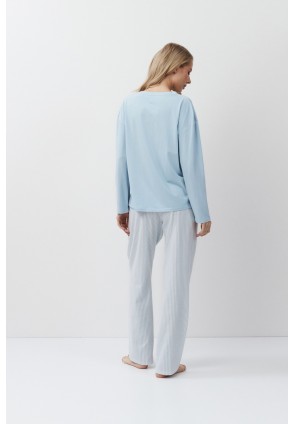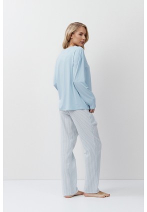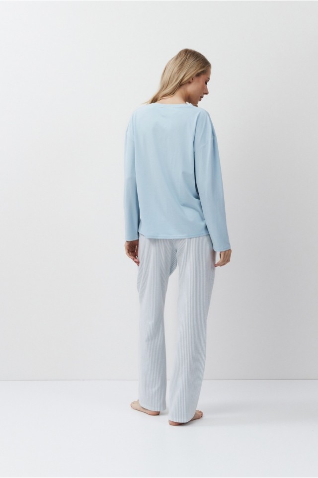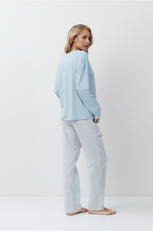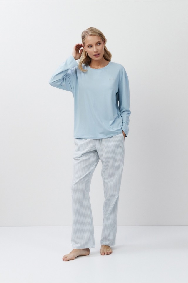 Пижама женская со штанами BONNIE для вашего ночного комфорта. Футболка с длинными рукавами, выполнена из хлопка с модалом. Штаны свободные, с эластичным поясом с завязкой и двумя боковыми карманами. Выполнены из мягкого фланелевого хлопка. Расслабьтесь с максимальным комфортом и стилем в пижаме BROOKE.