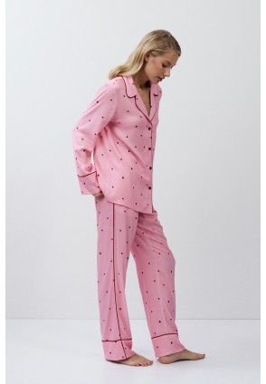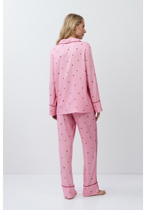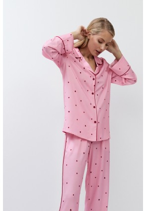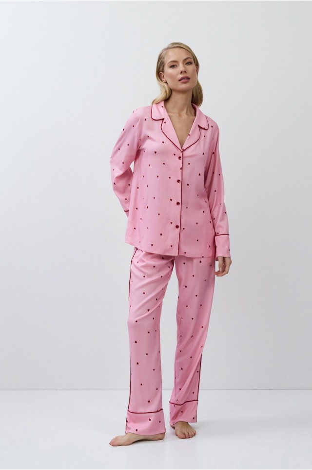 Пижама женская со штанами CHERIE для вашего ночного комфорта. Пижама выполнена из эластичной вискозы. Рубашка на пуговицах, с длинными рукавами, отложным воротником. Окантовка придаёт изделию особую изысканность. Штаны свободные, с эластичным поясом. Расслабьтесь с максимальным комфортом и стилем в пижаме CHERIE.