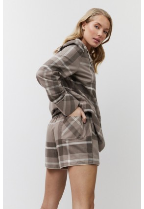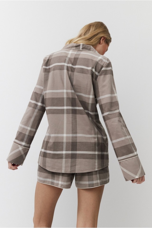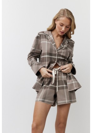 Пижама женская с шортами ELODY для максимального комфорта и расслабления. Выполнена из приятной к телу хлопковой ткани. Рубашка с длинными рукавами, на пуговицах, с окантовкой. Шорты свободного кроя, комфортной посадки, эластичный пояс со шнурком, по краю окантовка. Пижама станет вашим идеальным спутником во время сна.