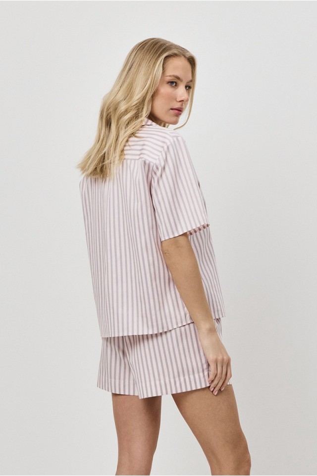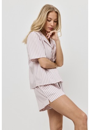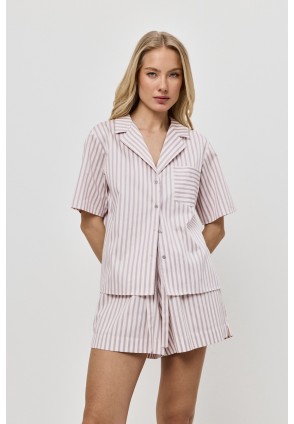 Пижама женская с шортами ELOW для вашего ночного комфорта. Пижама выполнена из хлопка с шелковой нитью. Рубашка на пуговицах, с короткими рукавами, отложным воротником и нагрудным карманом. Шорты свободного кроя, эластичный пояс с кулиской, по бокам карманы. Расслабьтесь с максимальным комфортом и стилем в пижаме ELOW.