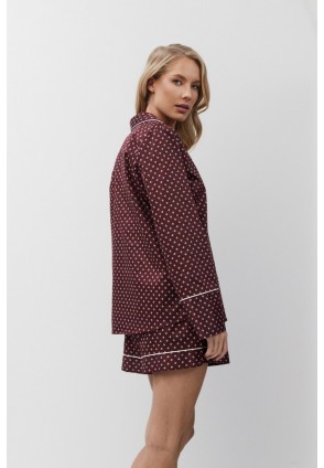 Пижама женская с шортами GEORGETTE, идеальный вариант для ночного отдыха. Рубашка с длинными рукавами, на пуговицах, c V-образным вырезом горловины и нагрудным карманом с левой стороны. Окантовка дополняет и украшает комплект. Шорты короткие, комфортной посадки, с боковыми карманами, эластичный пояс со шнурком. Изделие выполнено из шелковистого текстильного хлопка.