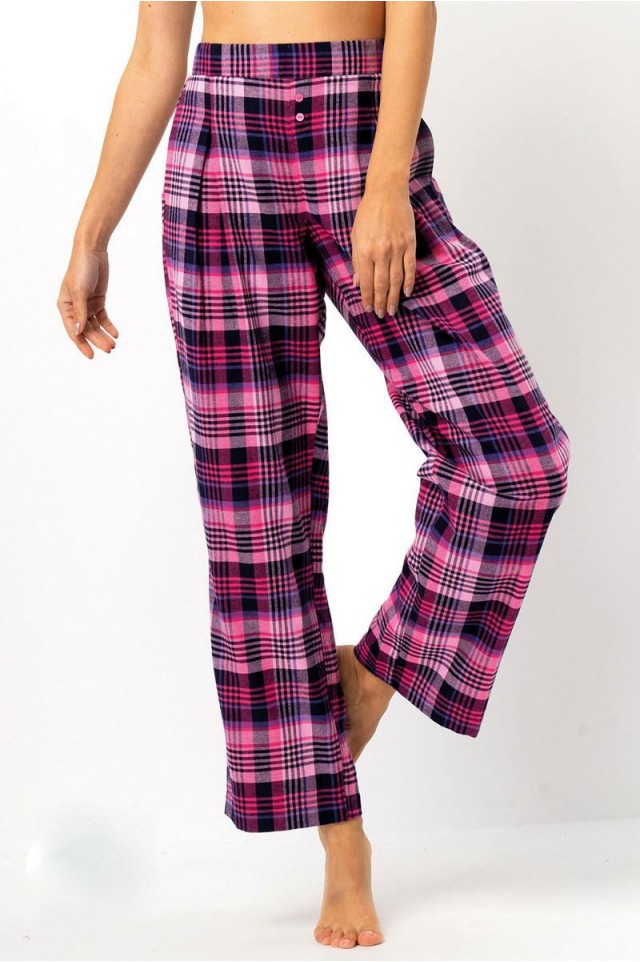 Очень удобные и теплые женские фланелевые брюки. Красивое сочетание цветов подарит вам и вашему телу отличное настроение. Нежная блестящая нить придает брюкам уникальность. Для женщин, которые любят фланелевые пижамы, но чувствуют, что хотят больше свободы и комфорта в бедрах. Очень свободный крой штанины вокруг бедер, благодаря передним вытачкам и уникальному дизайну пояса. Передняя часть пояса гладкая, слегка усилена широкой резинкой, мягко обхватывает живот. Сзади пояс собран на резинку, что дает полную свободу ягодицам. Декоративный разрез и две пуговицы спереди. Удобные, незаметные карманы по бокам. Исключительно теплая и удивительно приятная на ощупь фланелевая ткань согреет ваши ноги холодными днями. Они также отлично подойдут в качестве теплых домашних брюк. 100% высококачественные хлопковые волокна в сочетании с правильной строчкой и нитками обеспечивают комфорт, прочность и долговечное использование.