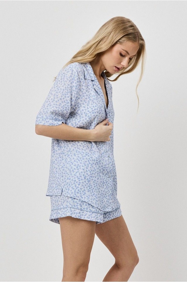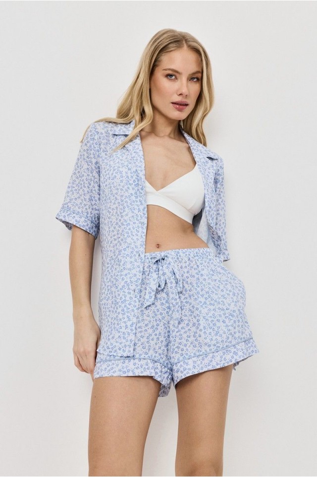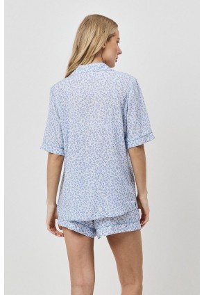 Пижама женская с шортами LULLABY для вашего ночного комфорта. Пижама выполнена из вискозы. Рубашка на пуговицах, с короткими рукавами, отложным воротником и нагрудным карманом. Окантовка украшает изделие. Шорты свободные, эластичный пояс с кулиской, по бокам карманы. Расслабьтесь с максимальным комфортом и стилем в пижаме LULLABY.