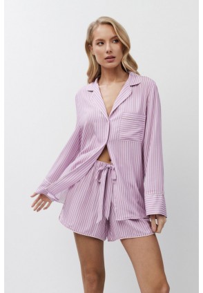 Пижама женская с шортами MARGARETH для вашего ночного комфорта. Пижама выполнена из вискозы. Рубашка на пуговицах, с длинными рукавами, отложным воротником и нагрудным карманом. Окантовка дополняет и украшает комплект. Шорты короткие, свободной формы, с эластичным поясом с завязкой. Расслабьтесь с максимальным комфортом и стилем в пижаме MARGARETH.