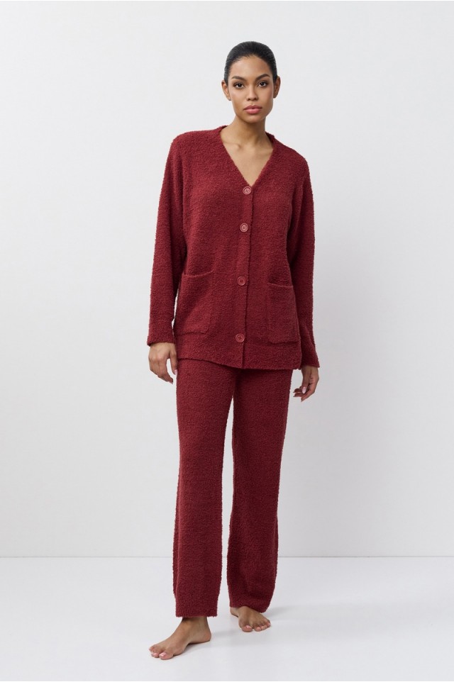 Представляем вашему вниманию уютный комплект MERRY SET SOFT, созданный для максимального комфорта. Стильный верх с длинными рукавами застегивается спереди на пуговицы, имеет V-образный вырез и удобные карманы для дополнительной функциональности. В сочетании с брюками этот комплект создает успокаивающий образ, напоминающий мягкость овечьей шерсти. Он идеально подходит для отдыха и является воплощением релаксации.