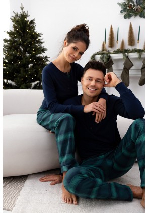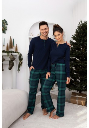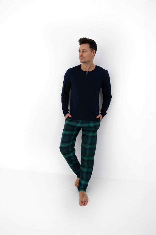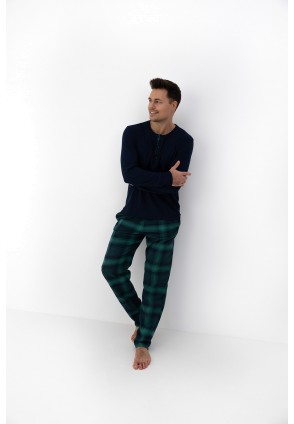 Мужская пижама Luke состоит из лонгслива с длинными рукавами и брюк прямого кроя в крупную клетку. Круглый вырез горловины, воротник на кулиске. Брюки оформлены удобными карманами. Идеальный вариант для домашнего отдыха.