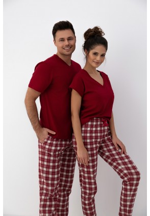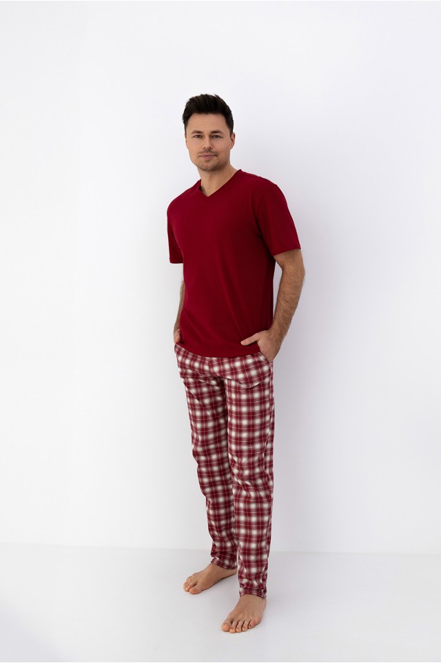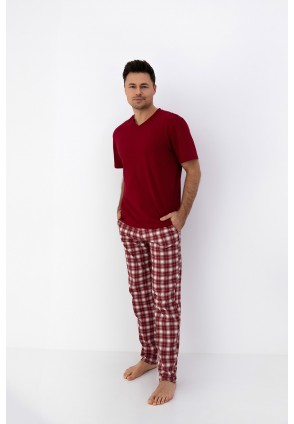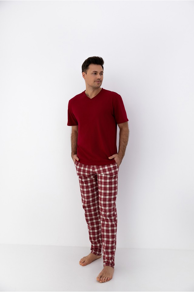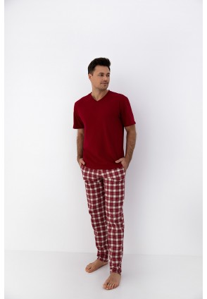 Мужская пижама Matthew состоит из футболки с v-образным вырезом горловины и брюк прямого кроя в крупную клетку. Брюки оформлены удобными карманами. Идеальный вариант для домашнего отдыха.