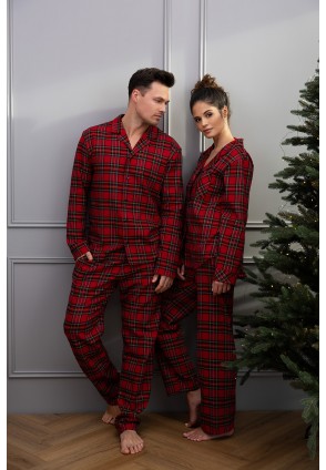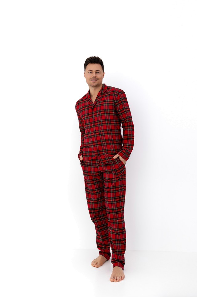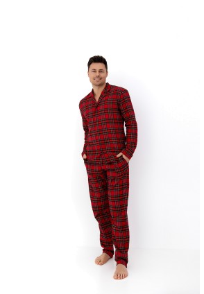 Мужская пижама Philip состоит из рубашки с длинными рукавами и брюк прямого кроя в крупную клетку. Рубашка на пуговицах, с фигурным воротником. Брюки оформлены удобными карманами. Идеальный вариант для домашнего отдыха.