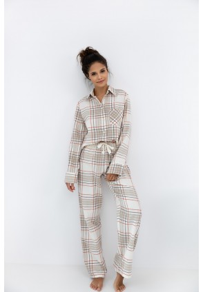 Домашний комплект Adalyn состоит из прямых брюк в клетку и рубашки на пуговицах. Брюки на широкой резинке, декорированы бантиком на поясе. Идеальный вариант не только для сна, но и для домашнего отдыха.