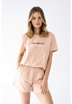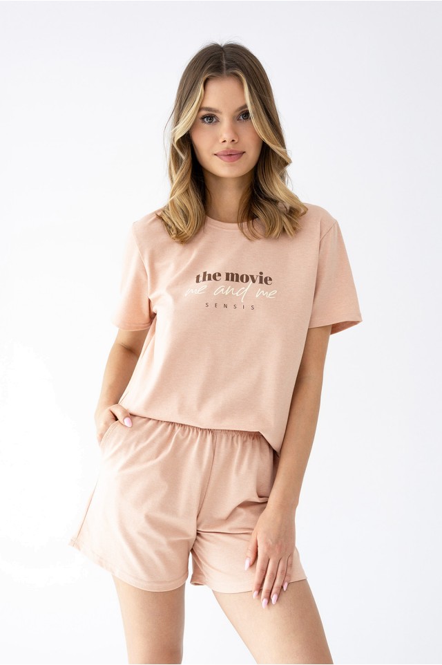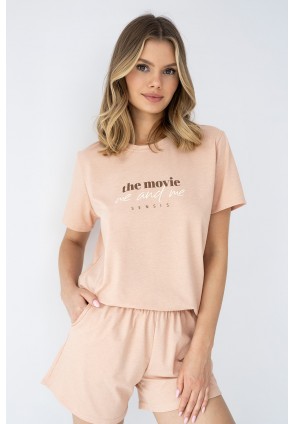 Однотонная пижама Anika состоит из футболки и шортиков. Топ с круглым вырезом горловины и надписью на груди. Шортики прямого кроя. Идеальный вариант не только для сна, но и для домашнего отдыха. Состав шорт: хлопок 95%, эластан 5%