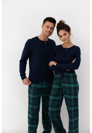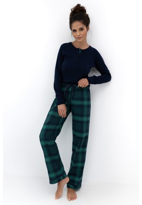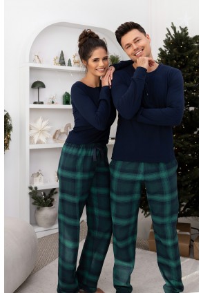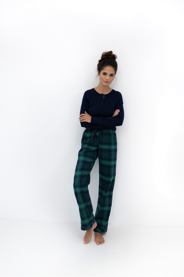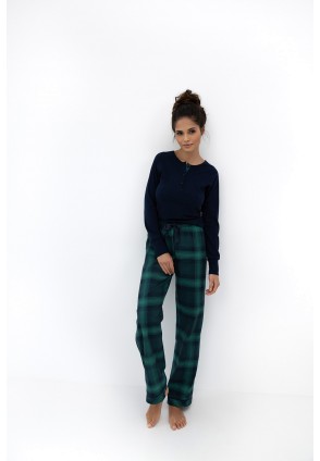 Пижама Cassandra состоит из прямых брюк и однотонного лонгслива с длинным рукавом. Брюки в крупную клетку, пояс декорирован контрастным бантиком. Идеальный вариант не только для сна, но и для домашнего отдыха.