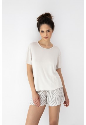 Пижама Dahlia состоит из однотонной футболки и шорт. Футболка с круглым вырезом горловины. Идеальный вариант не только для сна, но и для домашнего отдыха. Состав шорт: вискоза 100%