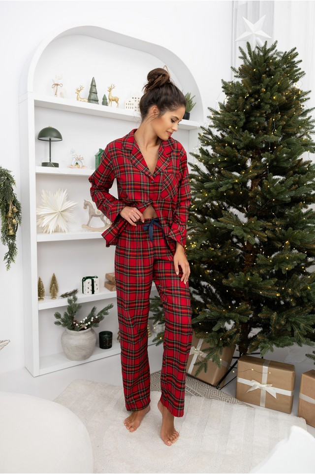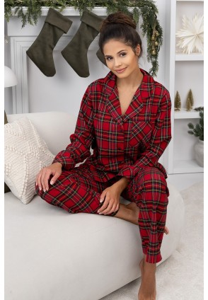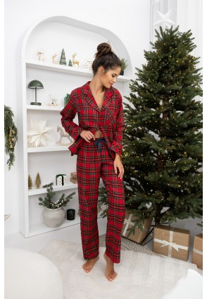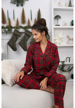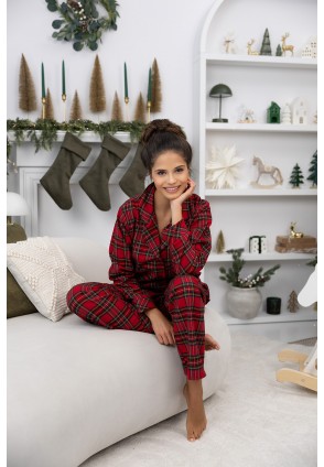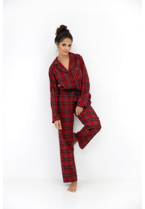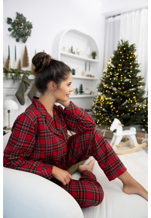 Стильный домашний комплект Dayana красного цвета, в клетку состоит из рубашки на пуговицах и прямых брюк. Рубашка с длинными рукавами, оформлена манжетами. Идеальный вариант для отдыха в домашней обстановке.