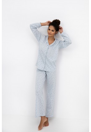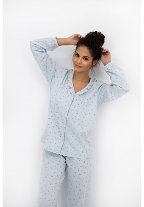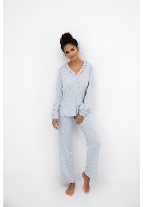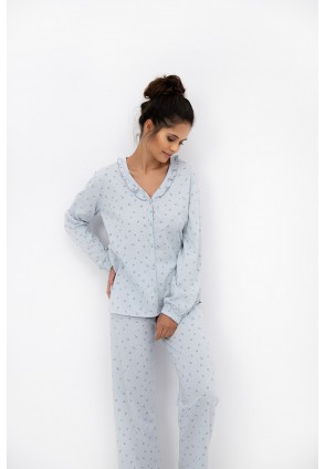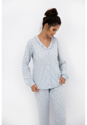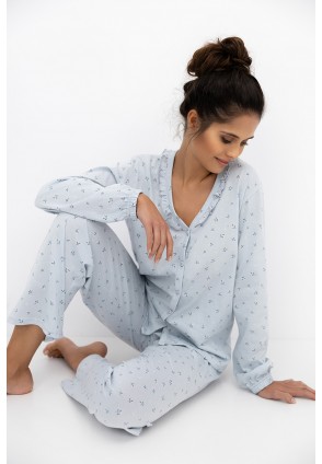Очаровательный комплект для сна Lucille состоит из прямых брюк и рубашки на пуговицах. Брюки на широкой резинке. Материал изделия выполнен с минималистичным растительным принтом. Идеальный вариант не только для сна, но и для домашнего отдыха. Состав брюк: хлопок 50%, вискоза 50%.