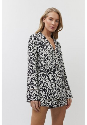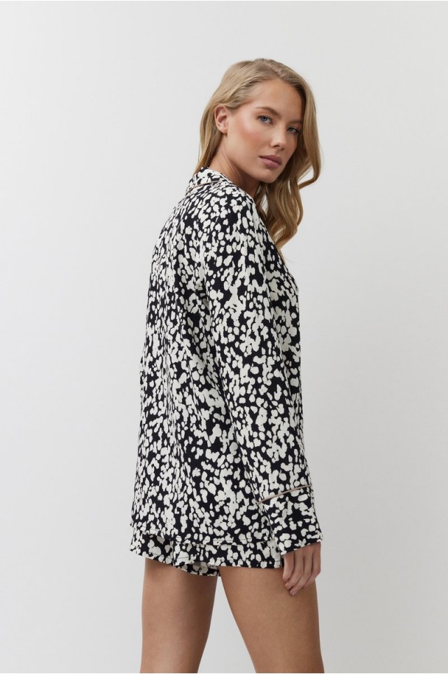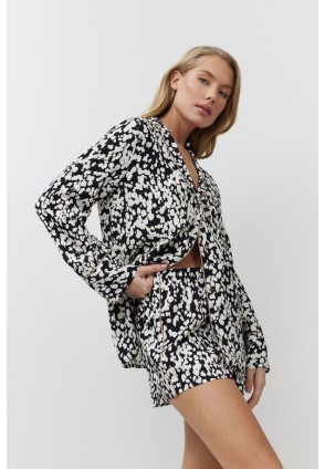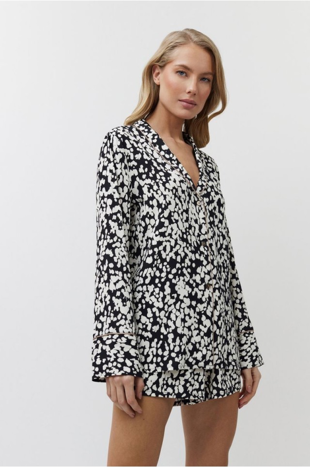 Пижама женская с шортами SOLENE для вашего ночного комфорта. Пижама выполнена из вискозы. Рубашка на пуговицах, с длинными рукавами, отложным воротником. Окантовка дополняет и украшает комплект. Шорты свободные, с эластичным поясом с завязкой. Расслабьтесь с максимальным комфортом и стилем в пижаме SOLENE.