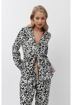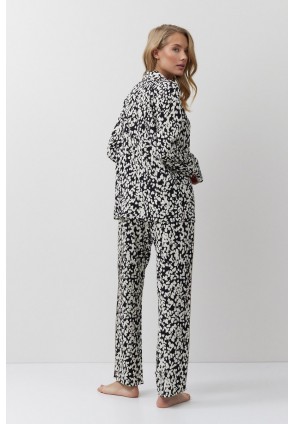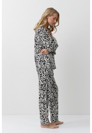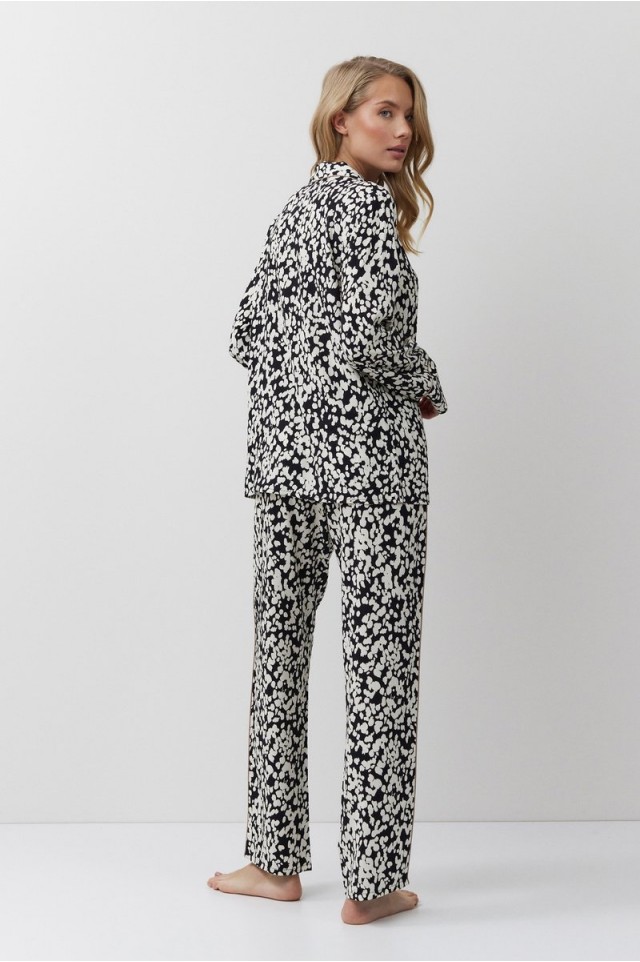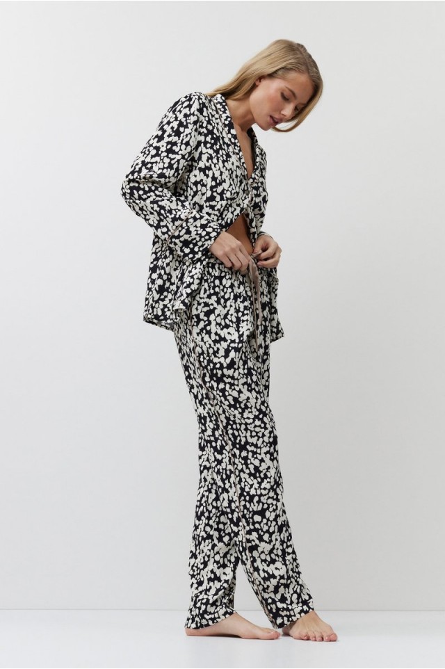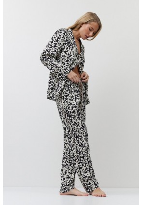 Пижама женская со штанами SOLENE для вашего ночного комфорта. Пижама выполнена из вискозы. Рубашка на пуговицах, с длинными рукавами, отложным воротником. Окантовка дополняет и украшает комплект. Штаны свободные, с эластичным поясом с завязкой. Расслабьтесь с максимальным комфортом и стилем в пижаме SOLENE.