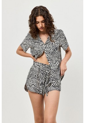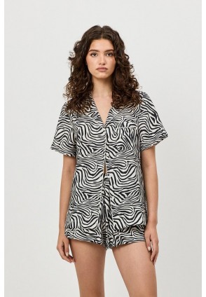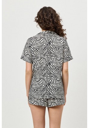 Пижама женская с шортами SWAY для вашего ночного комфорта. Пижама выполнена из вискозы с добавлением нейлона. Эффект слегка сжатой ткани. Рубашка на пуговицах, с короткими рукавами и отложным воротником. Окантовка украшает изделие. Шорты свободные с закругленными краями, эластичный пояс с кулиской. Расслабьтесь с максимальным комфортом и стилем в пижаме SWAY.