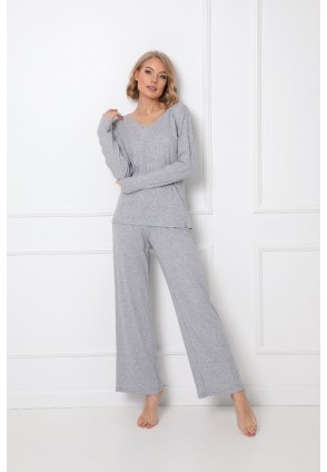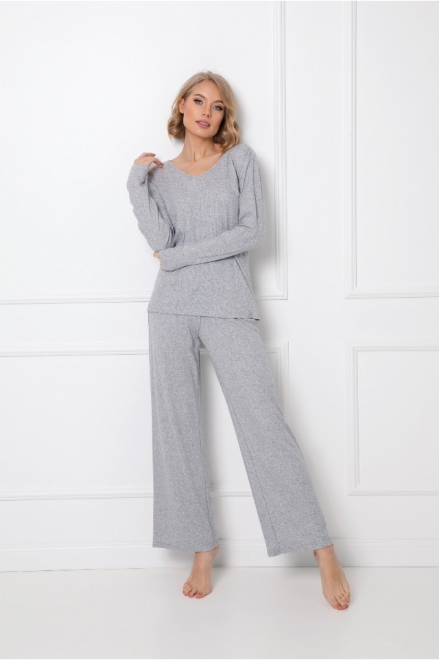 Для тех, кто любит носить дома что-то современное и модное. Мягкий, элегантный и немного сексуальный комплект домашней одежды Vivienne, выполненный из ткани с эффектом трикотажа. Штаны имеют эластичную талию и завязываются шнурком.