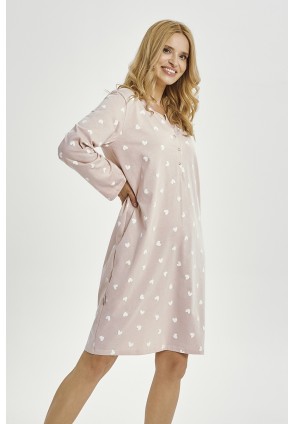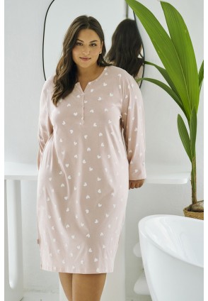 Женская сорочка из натурального хлопка. Сорочка с воротником-планкой на кнопках и длинными рукавами. Декорирована принтом-сердечки.