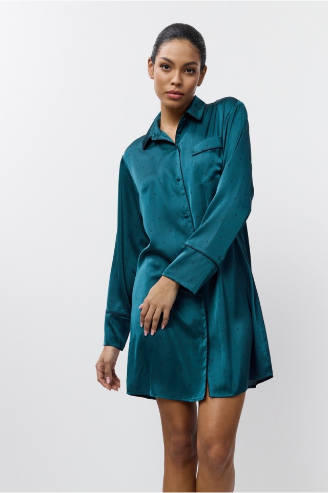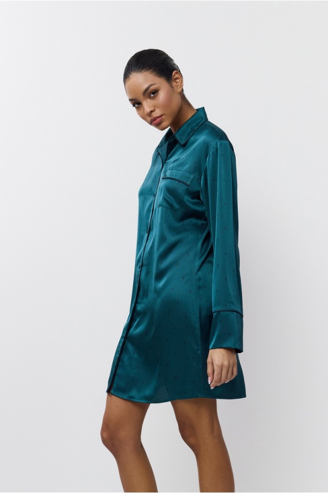Сорочка женская EMERALDA для максимального комфорта и расслабления. Выполнена из шелковистой атласной ткани. Сорочка рубашечного кроя, на пуговицах, с отложным воротником и нагрудным карманом. Рукава длинные, с окантовкой. Сорочка станет вашим идеальным спутником во время сна.