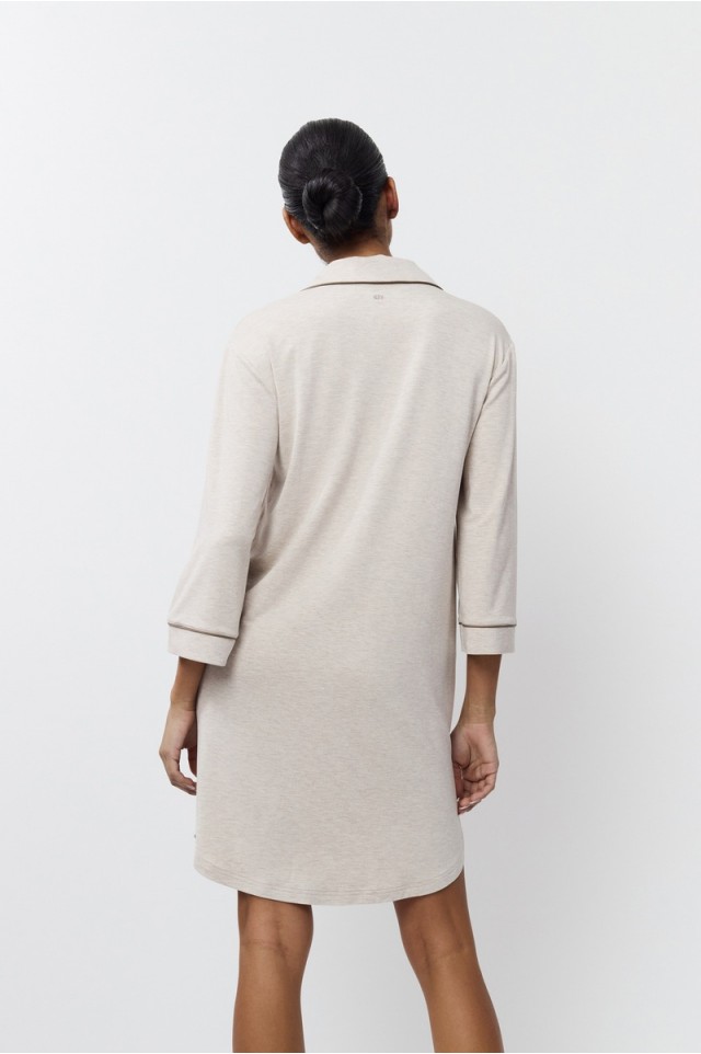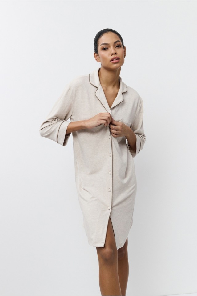 Сорочка женская KARINE для максимального комфорта и расслабления. Выполнена из эластичной вискозы. Сорочка рубашечного кроя, на пуговицах, с отложным воротником и нагрудным карманом, рукава 3/4. Окантовка добавляет изысканности изделию. Сорочка станет вашим идеальным спутником во время сна.