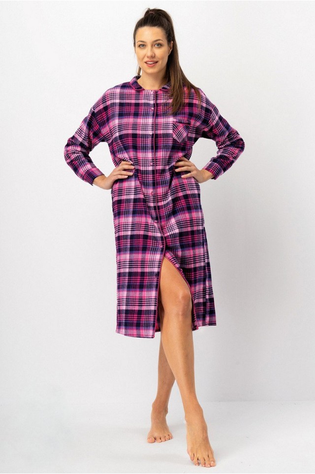 Фланелевая ночная сорочка на пуговицах с классическим воротником отличается чрезвычайно удобным кроем — спущенное плечо и складка на спине обеспечивают большую свободу во время сна. Удлиненный фасон, длина которого ниже колена (длина 114 см для размера M), и нижние разрезы обеспечивают свободу движений. Благодаря пуговицам по всей длине ее можно носить как теплую накидку. Незаметные и очень практичные карманы по бокам. Очаровательный декоративный карман на груди. Рукав с элегантной манжетой. Нежная и легкая фланелевая ткань согреет ваше тело прохладными вечерами. Высококачественные 100% хлопковые волокна в сочетании с соответствующими швами и нитками обеспечивают долговечность и прочность. Необычайно гармоничное сочетание оттенков наполняет радостью и энергией. Изделие мягкое, приятно облегает женский силуэт и обеспечивает спокойный, здоровый сон. Healthy Flannel — идеальный подарок для любимого человека. Выкройка доступна в размерах от S до 4 XL!