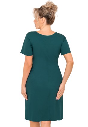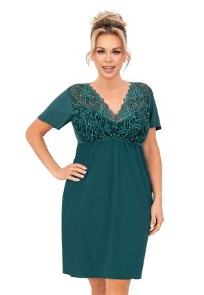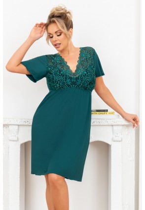 Сорочка Melania изумрудного цвета с короткими рукавами. Длина выше колен, декорирована на груди и плечах красивым цветочным кружевом. Изделие выполнено из мягкой гладкой вискозы и упаковано в красивую плотную коробку.