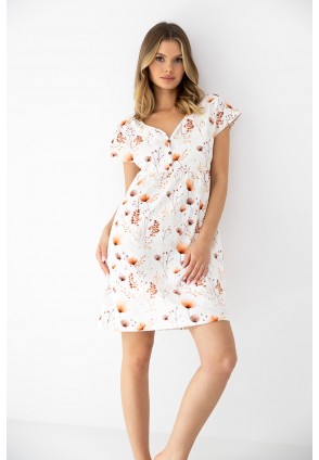 Легкое домашнее платье Arielle с длиной выше колена. Вырез горловины неглубокий. Материал выполнен с нежным цветочным принтом. Приталенный крой создает очень женственный силуэт. Идеально подойдет для отдыха в домашней обстановке.
