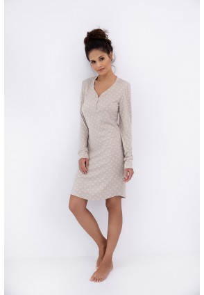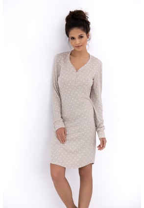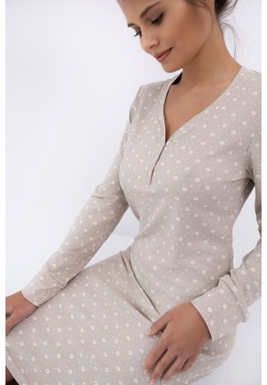 Милое домашнее платье Baylee с мелким цветочным принтом. Горловина с v-образным вырезом, воротник на кулиске. Длина сорочки выше колена, рукава длинные, оформленные манжетами. Идеально подойдет не только для сна, но и для отдыха в домашней обстановке.